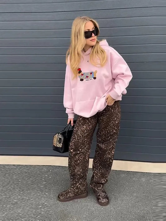 Heart Print Streetwear Hoodies Women Sweatshirt Spring Autumn Long Sleeve Hoodie Clothes