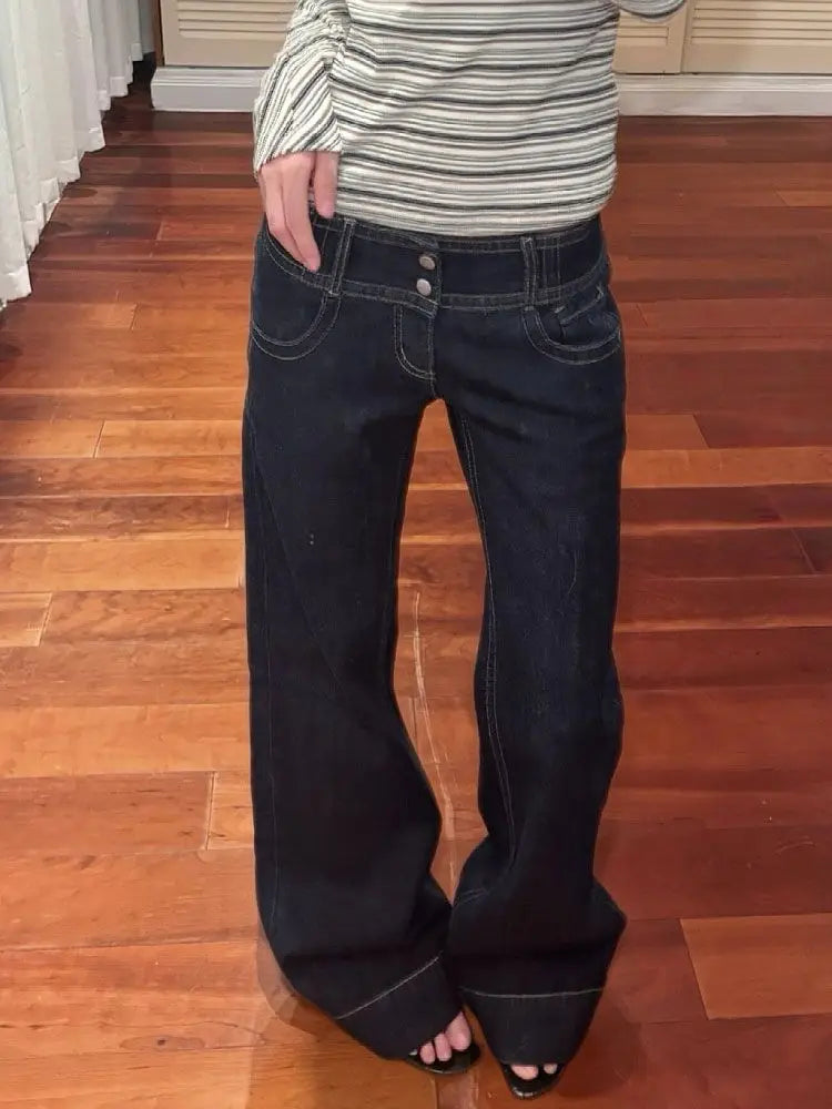 American Vintage Low Waist Wide Leg Jeans Women Spring Autumn Loose Drapey Tall Extended Length Hot Girls Casual Wide Leg Pants