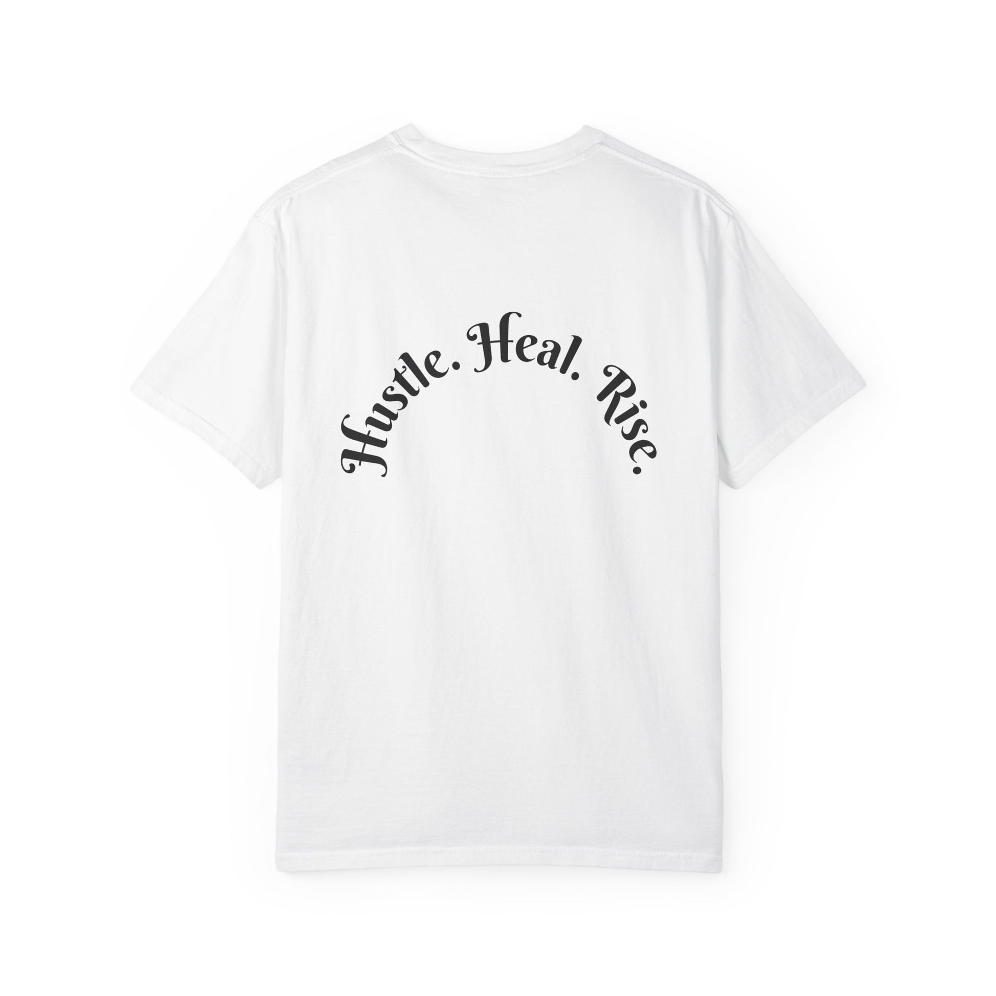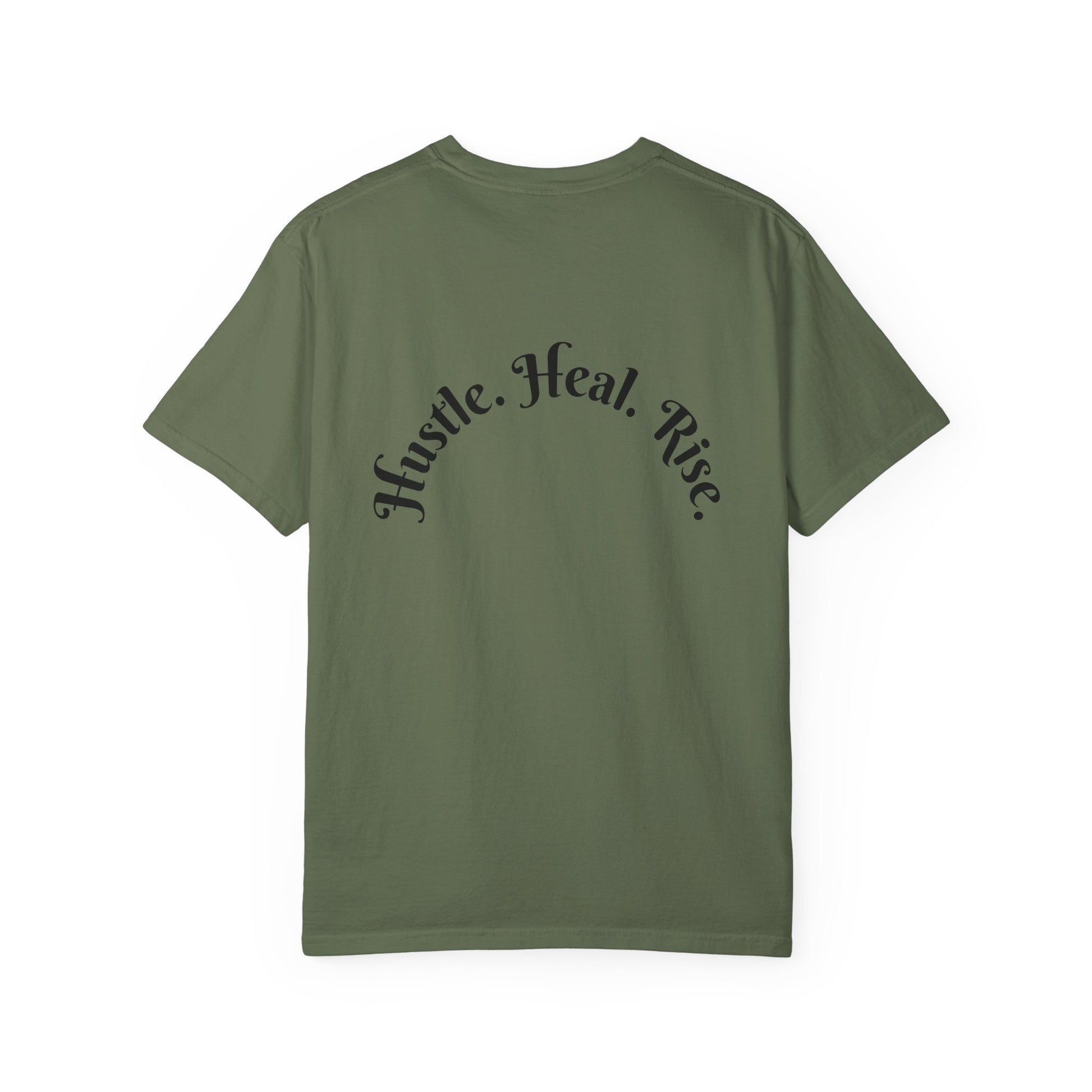 Electric Phoenix Graphic T‑Shirt — 'Hustle. Heal. Rise.' Motivational Tee