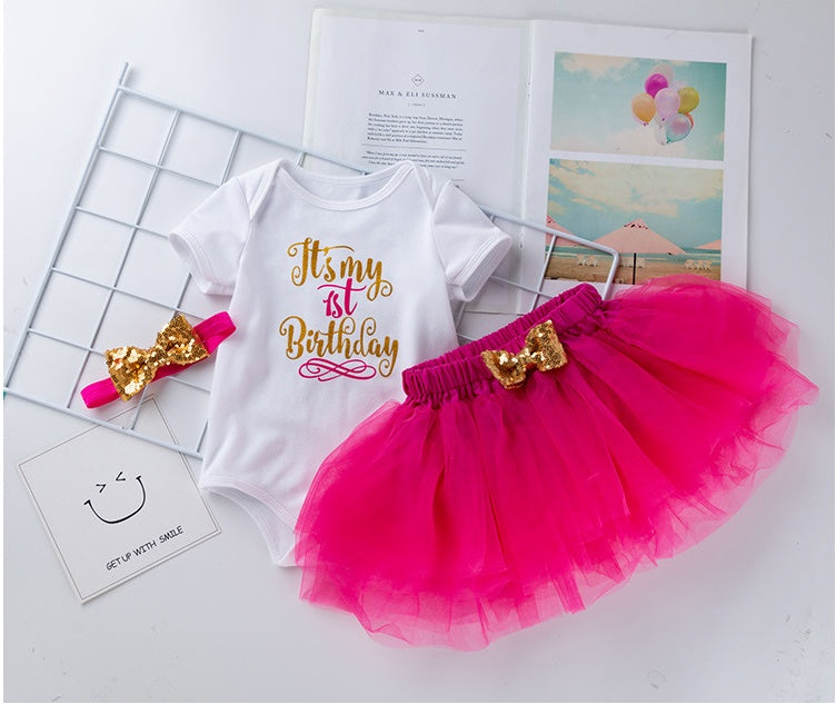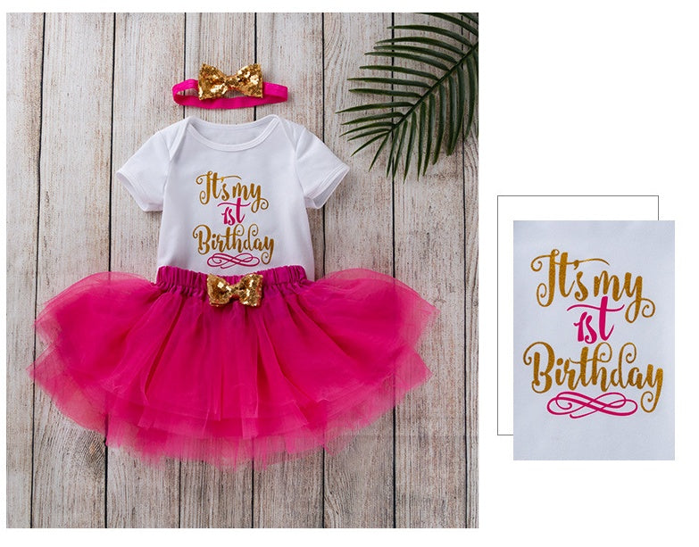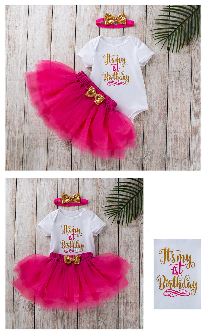 Fashion Girls' Short-sleeved Letter Printed Blouse Mesh Skirt